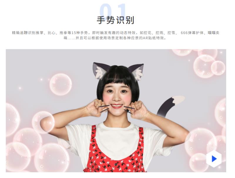 依托手势识别技术和动作识别技术,实现用手势或特定动作来触发AR贴纸特效