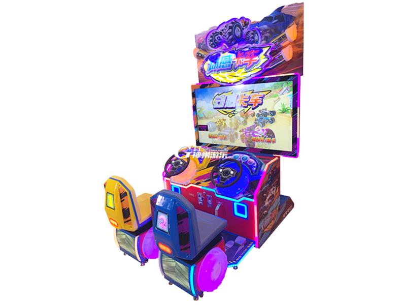 | 动感卡车 尺寸:1333*1616*2142mm 重量:225kg 功率:650W 游玩人数:2人 产品简介: 1.嘉年华彩票类机器 2.游戏玩法新颖,刺激,极富休闲娱乐性 3.外形设计美观大方,图案鲜艳、细腻,用料精致 玩法说明: 1.玩家投币,用震动枪上的“开始键”进入选择 2.用方向盘选择“角色”,然后进入游戏 3.玩家发射子弹杀死怪物(游戏当中捡起各种道具和金币,可以助你更好的发挥),在规定时间内完成游戏 4.完成比赛后,进入成绩发表和抽奖,有机会获得扭蛋 |