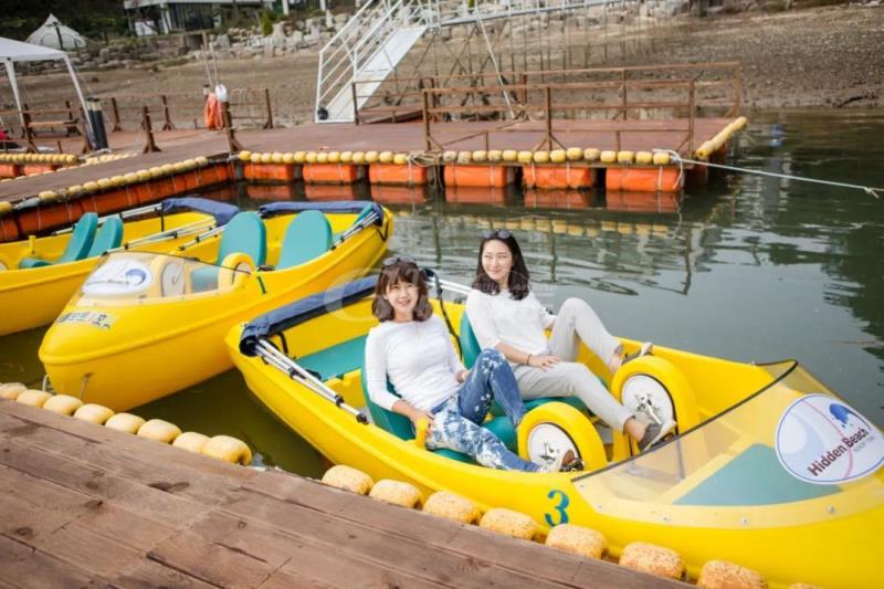 脚踏船有两排座位,前排两个人脚踏而后排两个人可以懒散地享受。结实耐用的滚塑聚乙烯船体抗风浪性能优异,独有的镇流龙骨在强风下能保持稳定。可以在2米高的海浪中能稳定运行,河流湖泊会更加稳定。该船具有高效,低噪音和平滑的脚踏转动系统,它驱动一个38厘米的两刀式螺旋推进器毫不费力地在水中运动,可以达到每小时12公里。停止和后退都由脚踏来完成。舵转向是由座舱右侧的一个手柄来控制,能提供方便和有效的转向能力。推拉手柄,可允许您完成180度转向。设计的高挡风玻璃和高的干舷后卫可以有效的防范风、海浪和水的喷溅。脚踏的人斜躺在合身座椅上,可以调节到自己舒适的位置。后座下方有充足的存储空间,在船头有一个平台,可以放照相机,食品和饮料等。建在船尾上的横梁可以在游泳后很方便地进出。1.全塑船体:采用进口的耐冲击、高密度、抗紫外线聚乙烯材料加工而成,具有重量轻,安全性高,免维护,寿命长等优点。2.驱动系统:独有的同步带驱动,专利设计,提供4:1的强力变速。每小时速度高达10-12公里,极具娱乐性,远超同类产品。3.防锈防腐:船体、驱动系统、座椅等属全塑材质,耐腐蚀,不生锈。5.转向灵敏:超大双舵设计,可以完成180度转向。6.绿色环保:可回收的聚乙烯材质,对环境无任何污染。7.操作员座位:按人体工程学设计,软卧位型,可前后调节,舒适感极佳。8.行驶安静:螺旋桨驱动,保护环境,不扰动水中生物,是钓鱼及观赏水中生物的佳选。