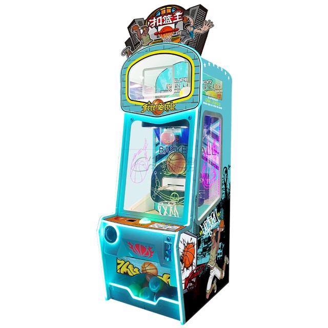 详情:大扭蛋礼品机。经典扣篮玩法,投币后在规定时间按下按钮,把握时机,球落入篮筐即可得到礼品。机械式纯技巧玩法,玩法简单直观!营收保证!适合儿童和综合场地!