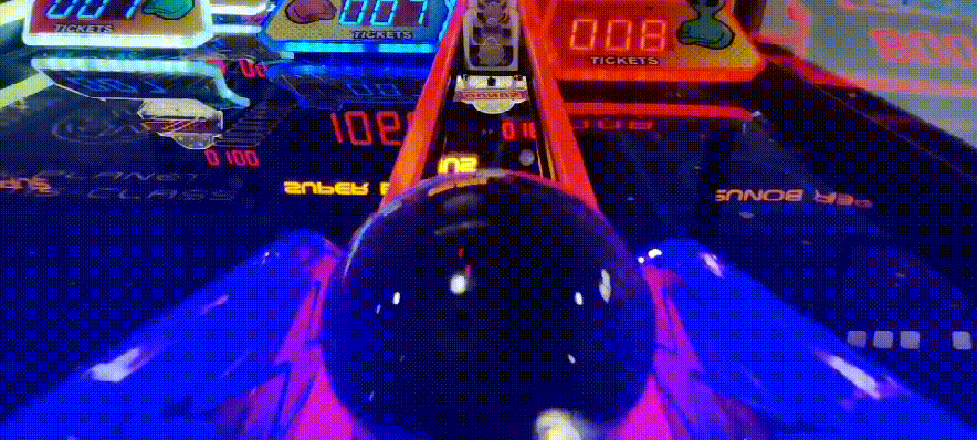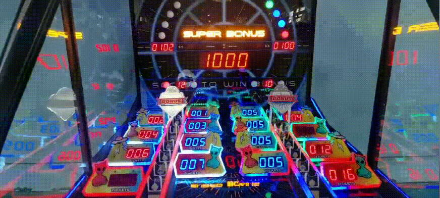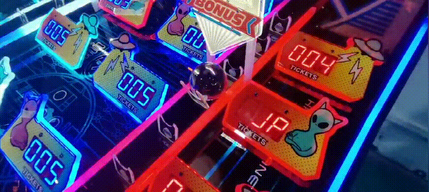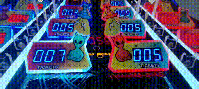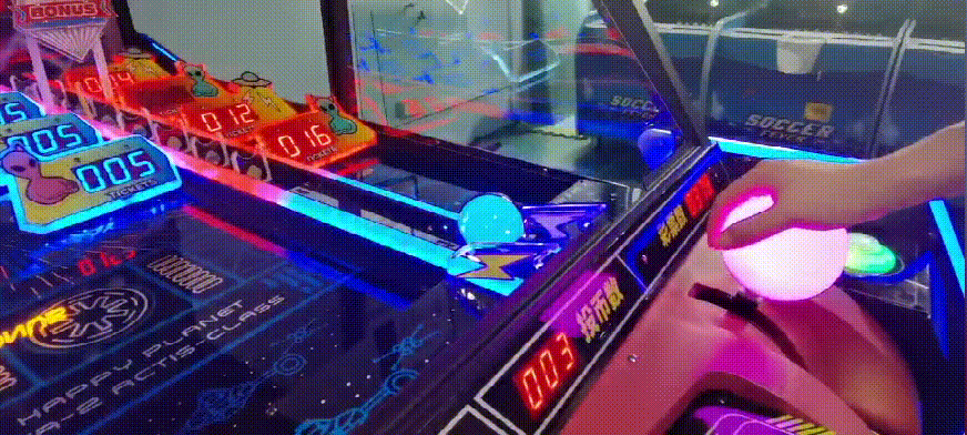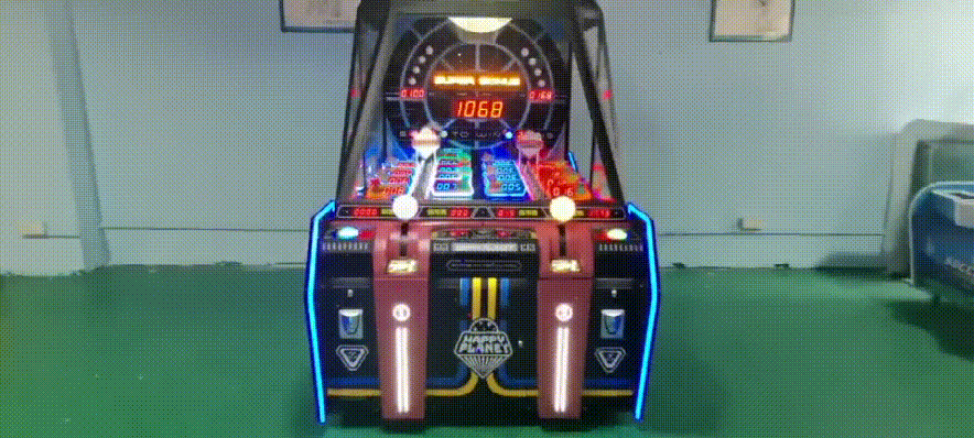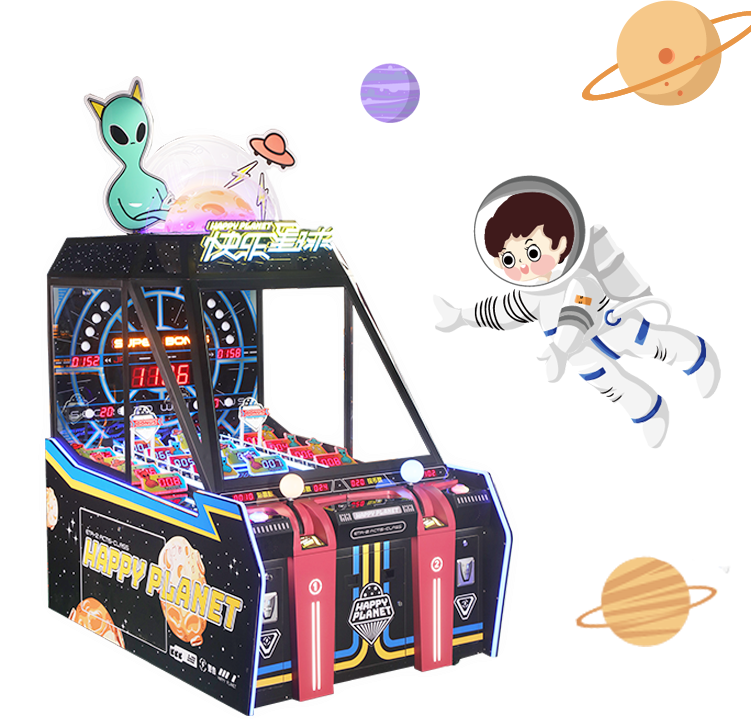《快乐星球》以黑色为主色调,结合外星人形象、飞碟、闪电、外星球、闪烁的星星等元素,打造了一个神秘的外星世界。外星主题在游乐场、电玩城中是比较少见的存在,这就奠定了这款设备吸睛引流的基础。而棱角分明的框体设计、红黄蓝等鲜艳颜色的点缀,又为其增添了几分时尚感和设计感。外观独具特色、操作简单、玩法有趣,兼顾普通玩家和专业玩家,同时又有必然中奖机制、奖励多重,还允许竞技互动,这多种元素造就了《快乐星球》的超强吸引力和黏性,同时也成就了其超高营收能力!