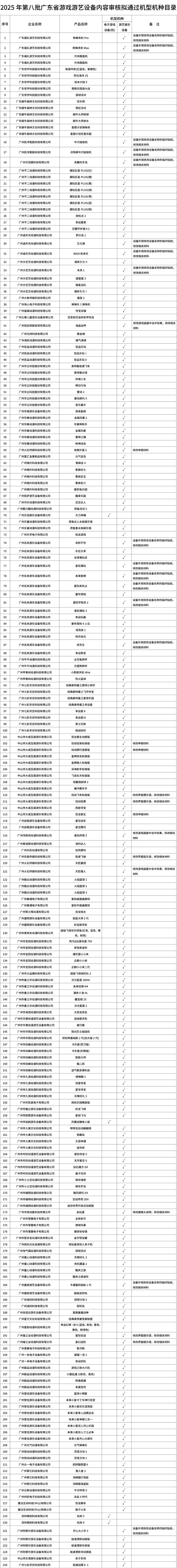 | 根据文化和旅游部《游戏游艺设备管理办法》等相关规定,现将我厅组织审核通过的《2025年第八批广东省游戏游艺设备内容审核拟通过机型机种目录》(见附件)进行公示,公示期为2025年11月4日至11月10日,共7日。 |