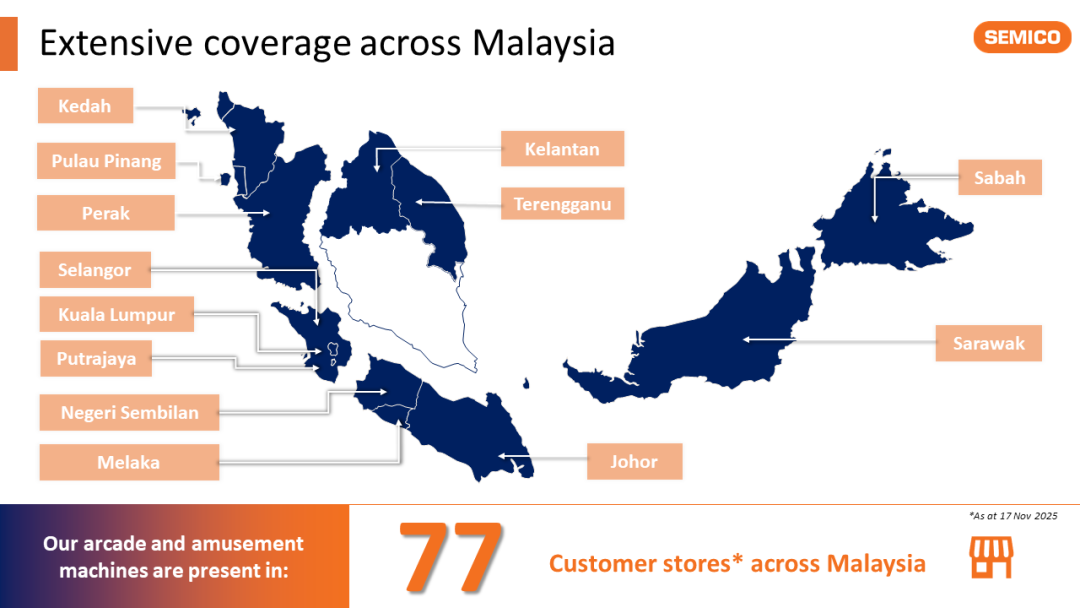 | 此外,Semico也没有放弃其老本行——游乐中心的街机业务。目前,它在马来西亚全国共有77个游乐网点,运营着650台街机与游乐机。 |