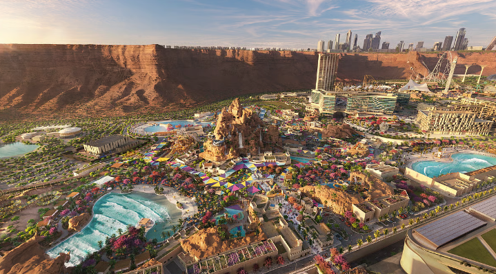 第一阶段(2028年前):六旗主题乐园、Aquarabia水上乐园、赛道、国家网球中心、高尔夫球场、15家酒店及住宅区; 第二阶段(2030年前):表演艺术中心、龙珠主题公园、电子竞技场馆、新增酒店及住宅项目; 第三阶段(2034年):配合世界杯与亚运会举办。 |