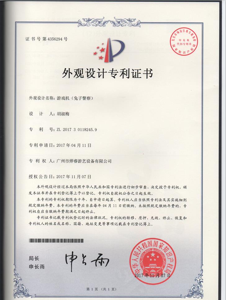 外观设计专利证书-兔子警察