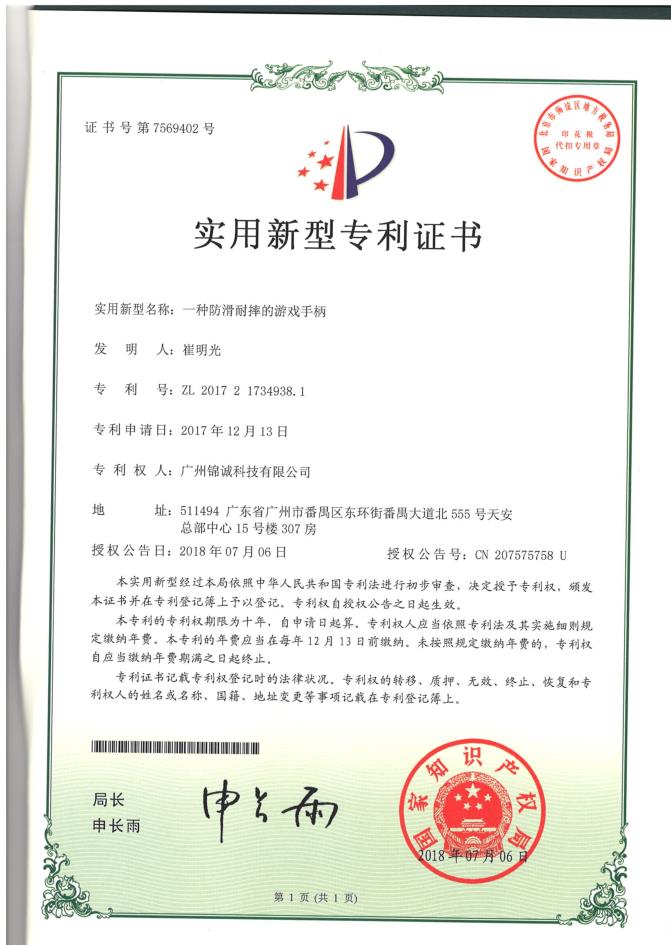 实用新型专利-一种防滑耐摔的游戏手柄