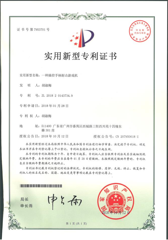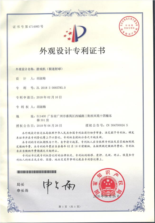 外观设计专利证书-极速射球