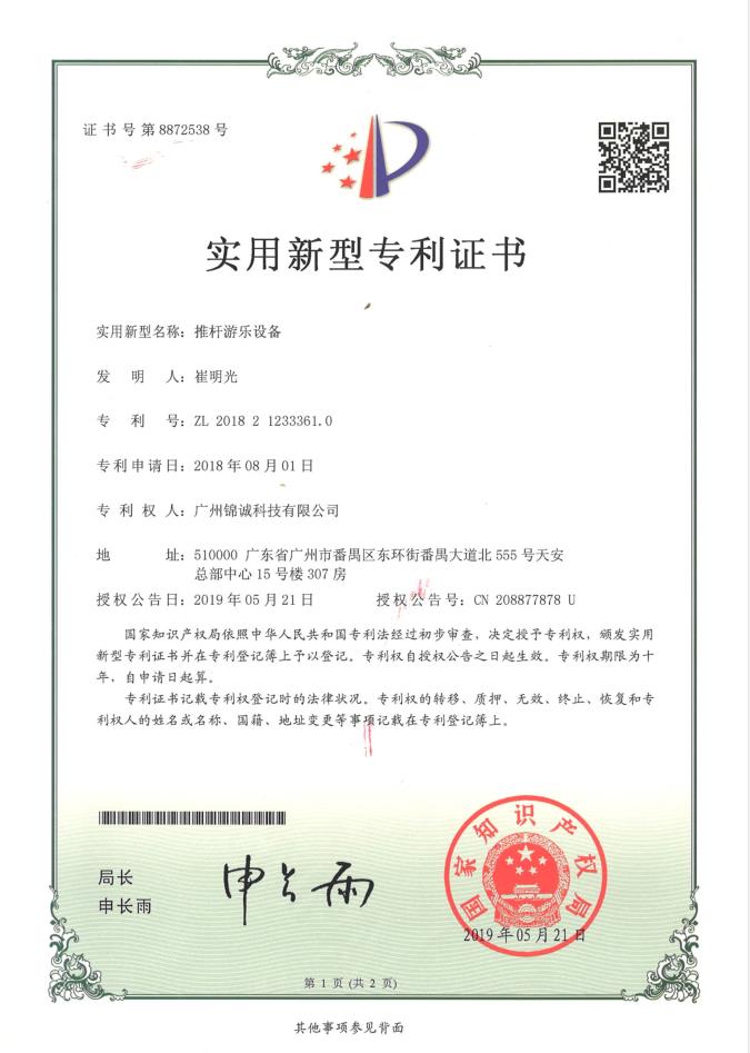 实用新型专利-推杆游乐设备