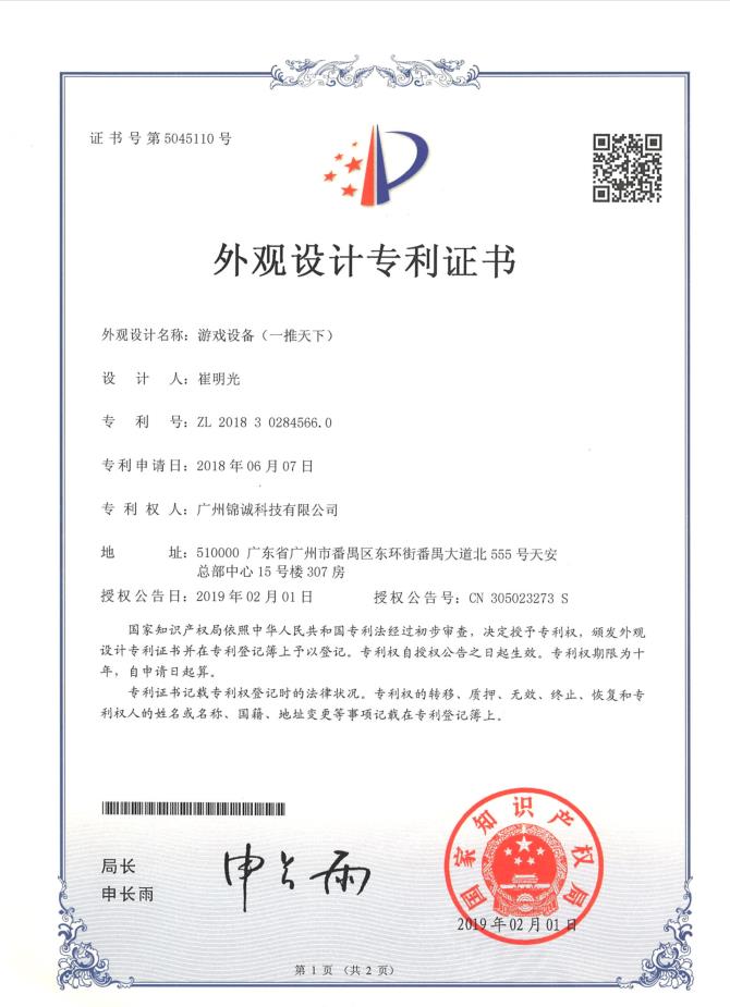 外观设计专利证书-一推天下