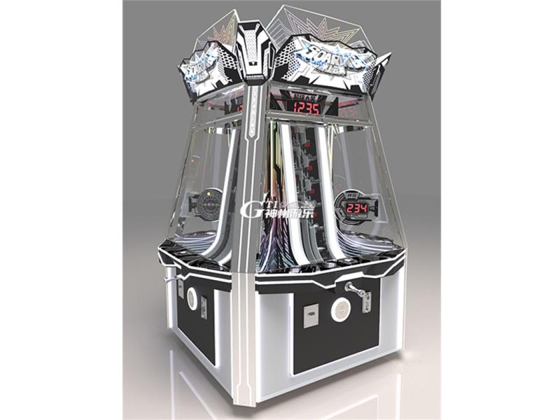 | 冲上云霄 尺寸:11620*1620*2500mm 重量:300kg 功率:380W 游玩人数:4人 产品介绍: 1.游戏玩法新颖,刺激,极富休闲娱乐性 2.外形设计美观大方,图案鲜艳细腻,材料选用木板、玻璃钢、不锈钢等制作,安全耐用 3.采用大规模集成化电路,内置程式,工作性能稳定、可靠 4.游戏程式及营收比率细腻可调 玩法说明: 1.投币,机器自动出球 2.适当的力度拉动弹球拉杆后防放手弹出球,使球经过轨道落入球洞;(如果力量过少球会落回发球球处,请使用更大的力量拉动拉杆;如果力量过大球将会冲过轨道,游戏结束。) 3.球进入洞口即可获得对应彩票,游戏结束;若能落入“JP”即进入转盘抽奖环节 4.若进入转盘环节时转盘灯快速转动转动,使用控台上“确认”按钮停止转灯盘;灯停止的位置就能获得对应奖励,如果停在“JP”处就能获得累计超级大奖 |